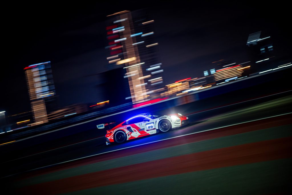 In a race dominated by busy traffic as well as intricate strategy due to the unusual refueling procedures and Code 60 rules, the No. 89 Porsche slowly but surely climbed up the GT3-Am ranks as night fell over the Dubai Autodrome.