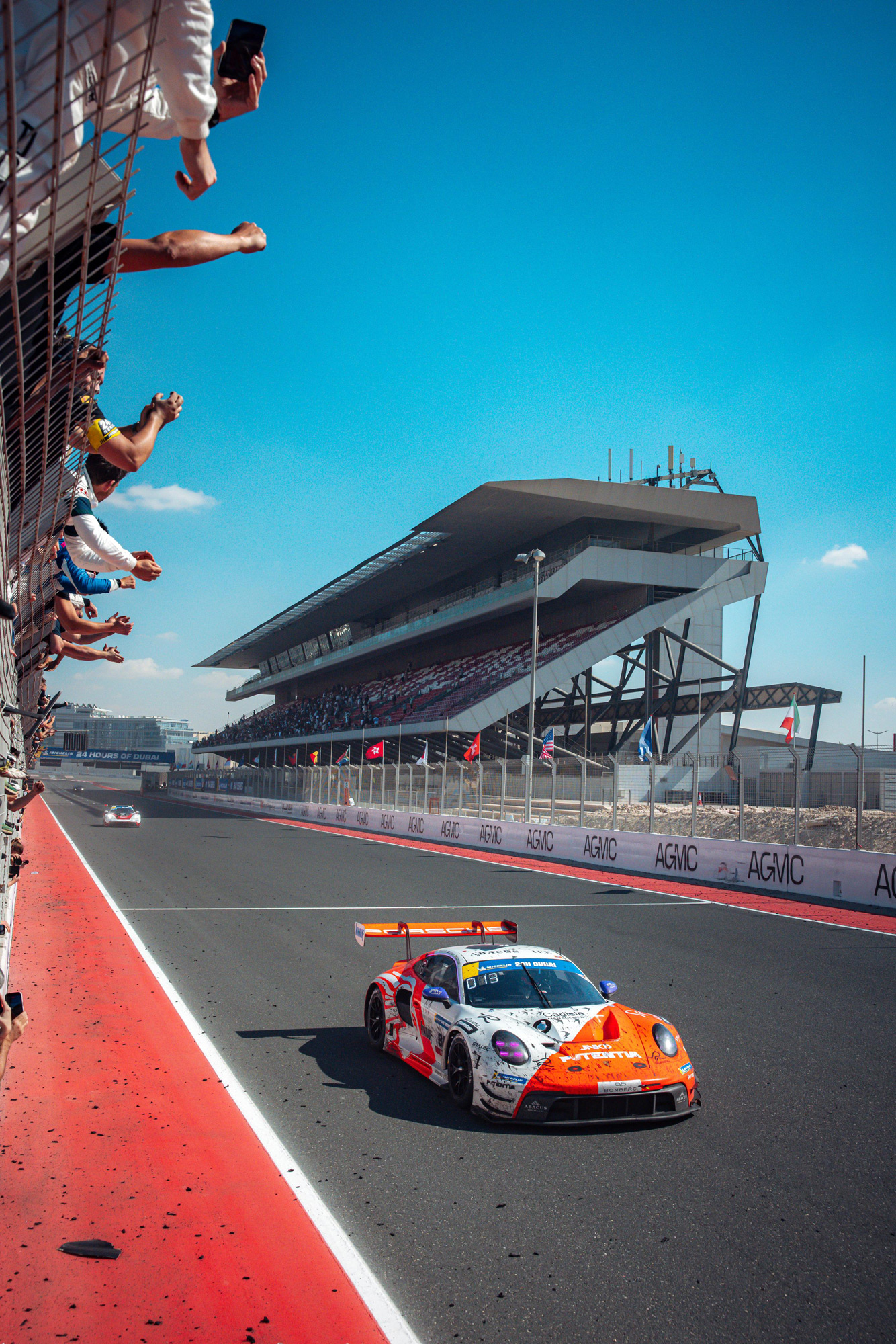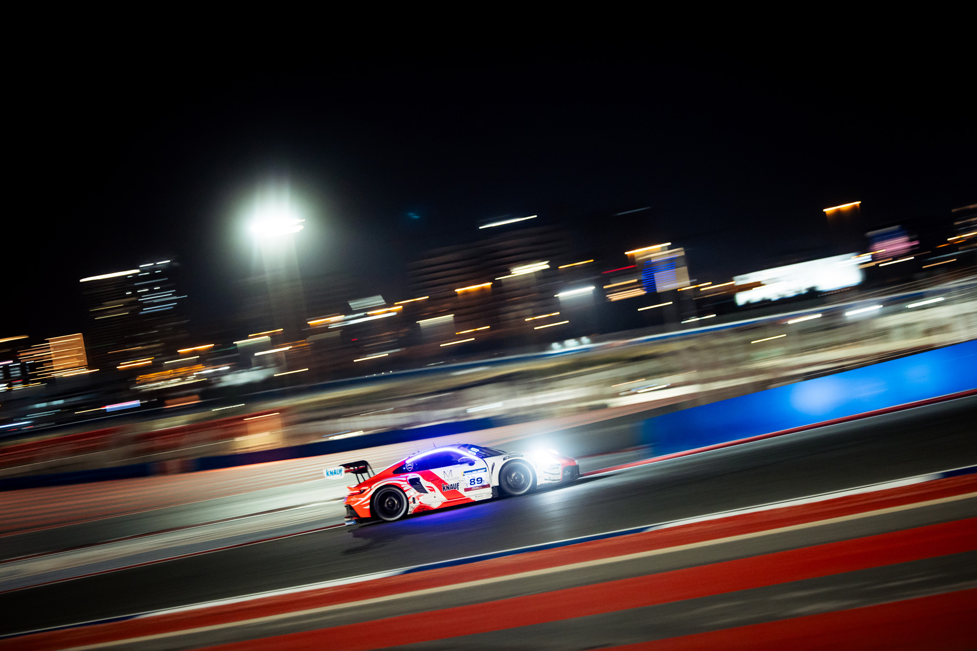 In a race dominated by busy traffic as well as intricate strategy due to the unusual refueling procedures and Code 60 rules, the No. 89 Porsche slowly but surely climbed up the GT3-Am ranks as night fell over the Dubai Autodrome.