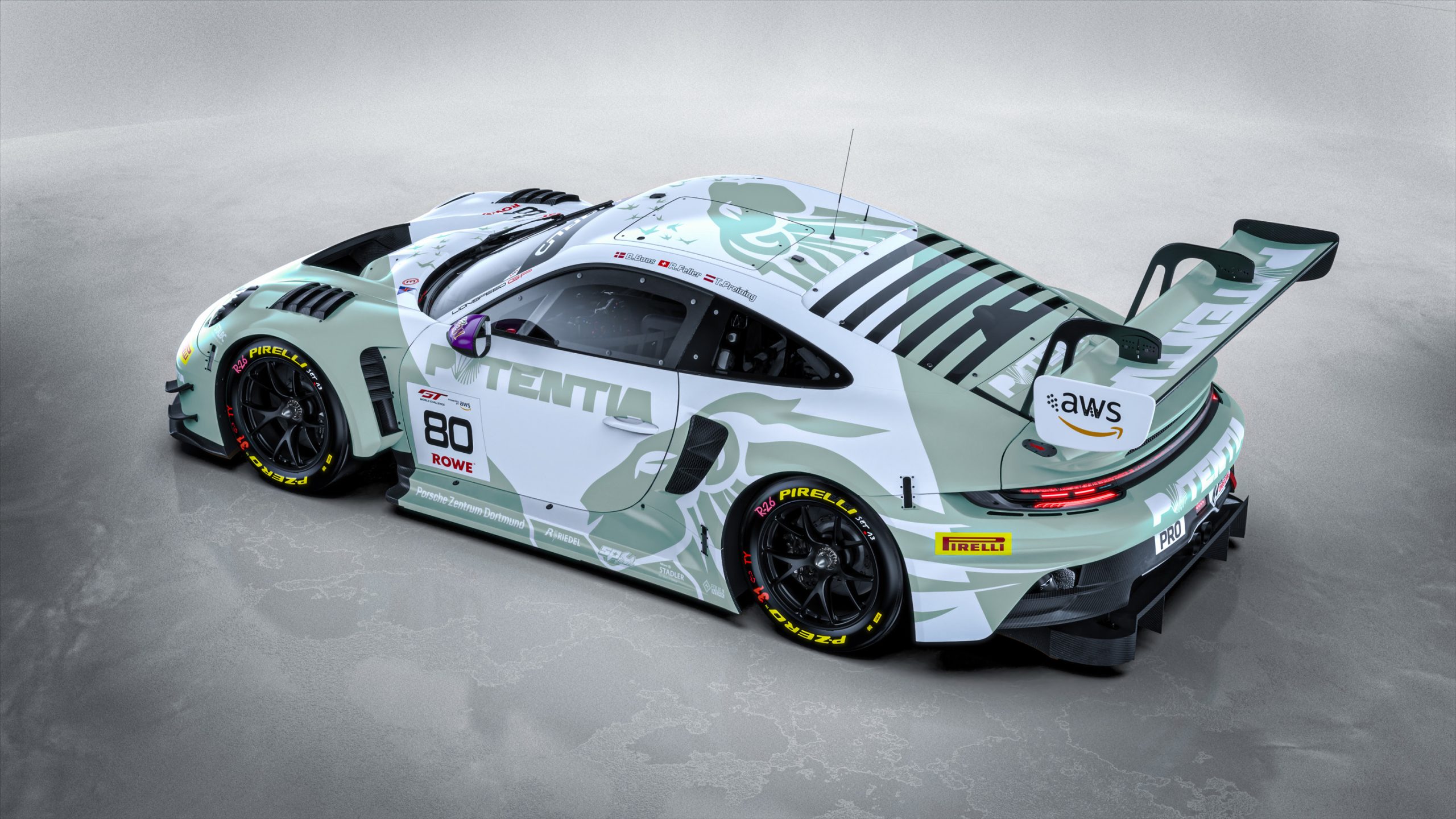 The #80 Porsche 911 GT3 R will feature the team’s iconic livery, reimagined in new colours through the support of partner Potentia, a North American-based developer of next-generation industrial and AI infrastructure. The mint and white machine will be driven by Bastian Buus (DEN) and Ricardo Feller (CHE), who are joined by Lionspeed newcomer Thomas Preining (AUT). All three drivers bring proven GT3 credentials, while also forming Porsche’s DTM line-up in 2026.